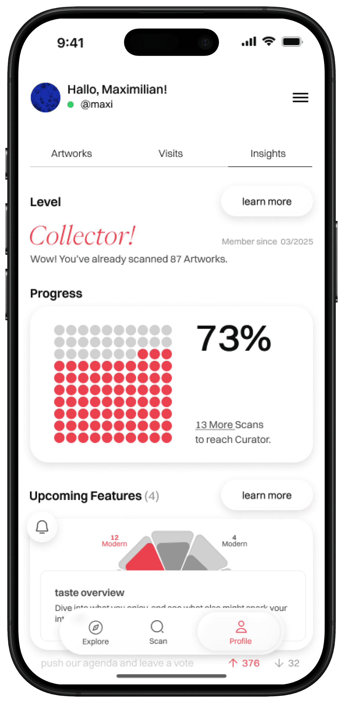Design and highlight your institution in the Artfluence app to bring more engaged visitors in your exhibitions.